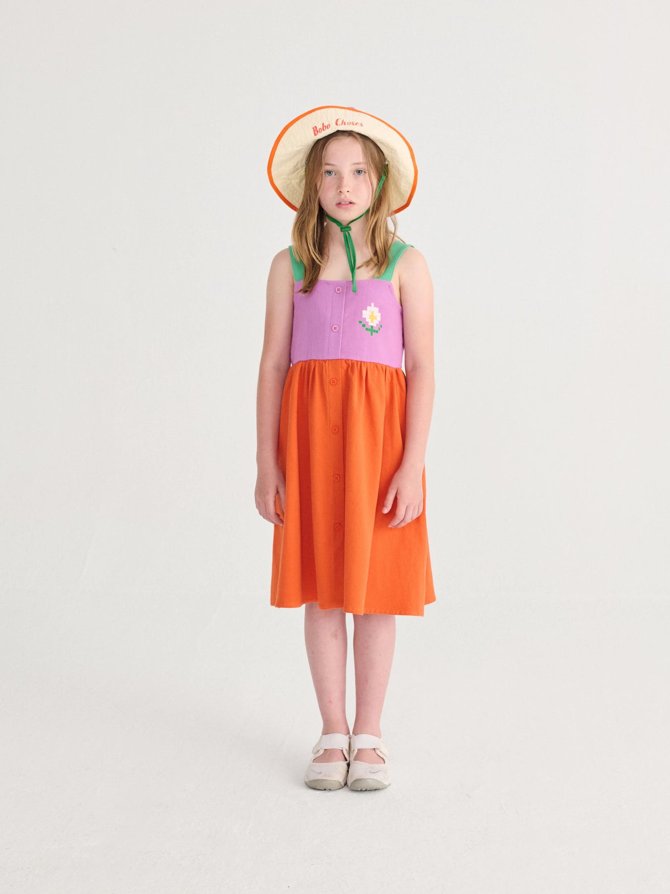 El vestido Pixel Daisy color block de Bobo Choses destaca por su diseño artístico y su estilo creativo. Sus colores y estampados reflejan el universo imaginativo de la marca.
