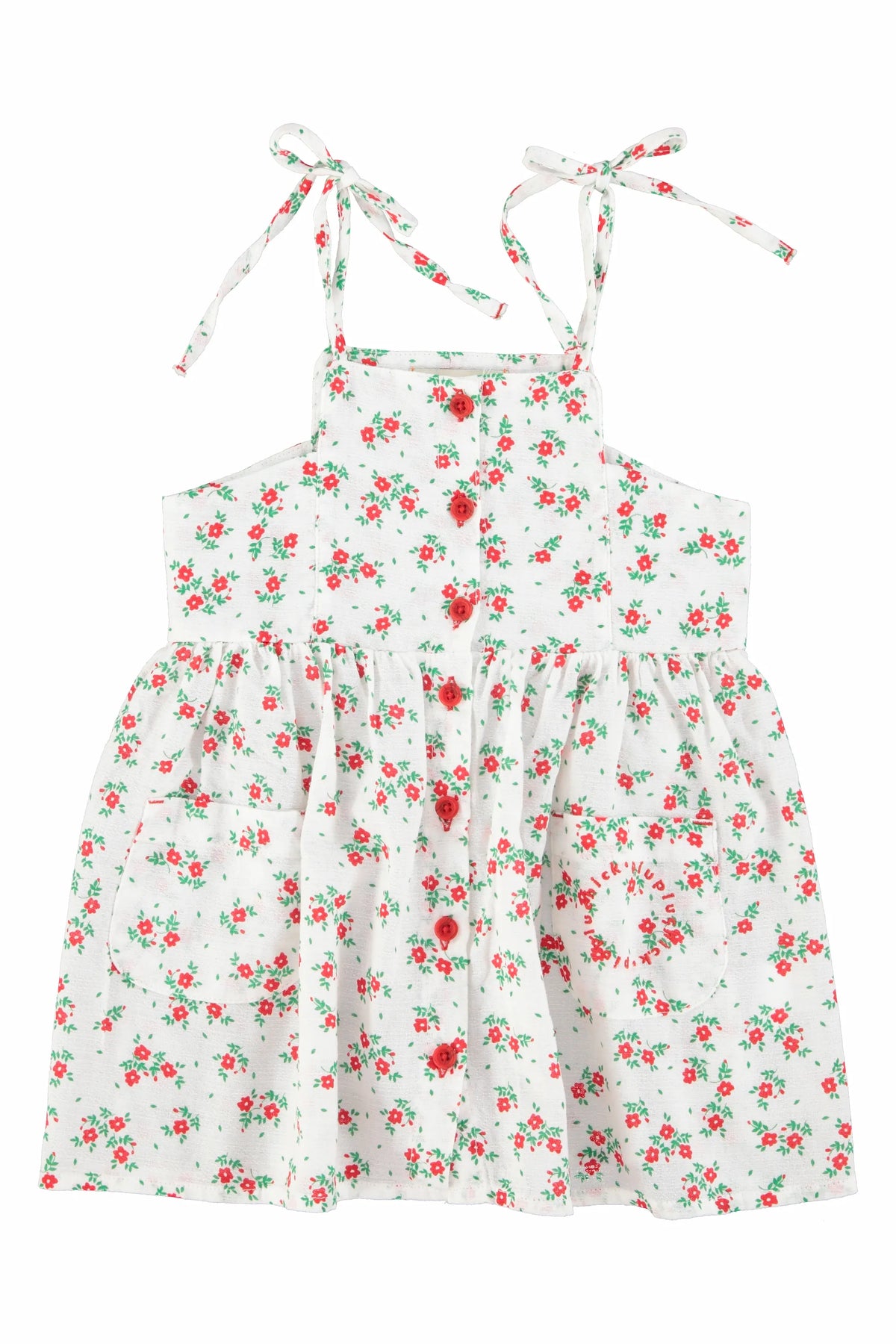 Short dress made of ecru cotton with a floral print.