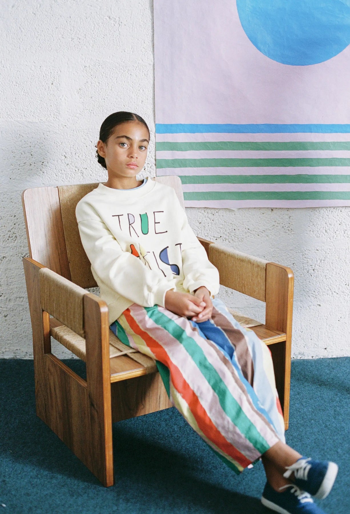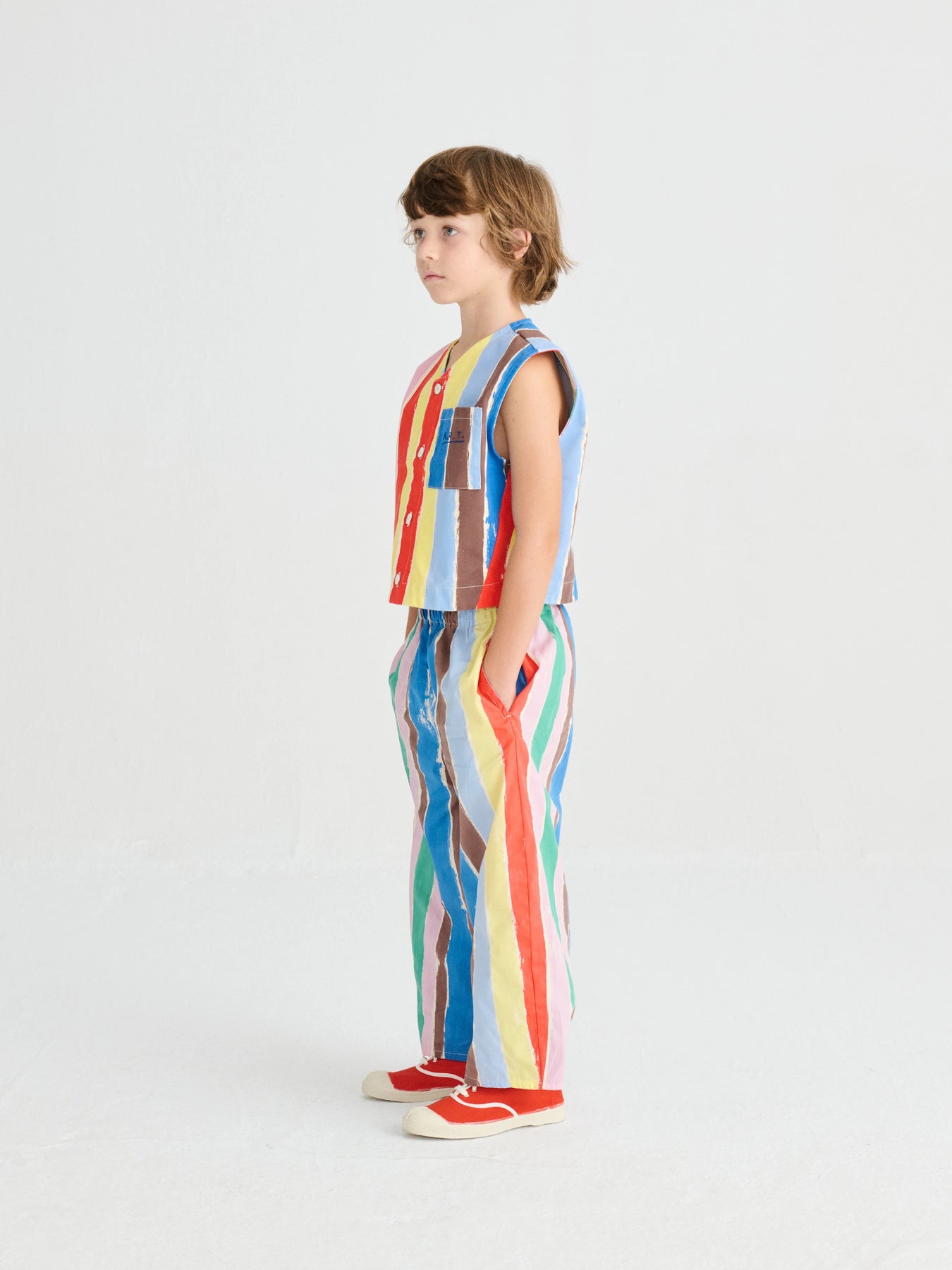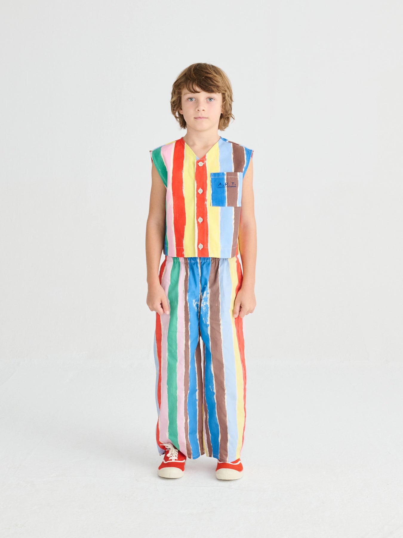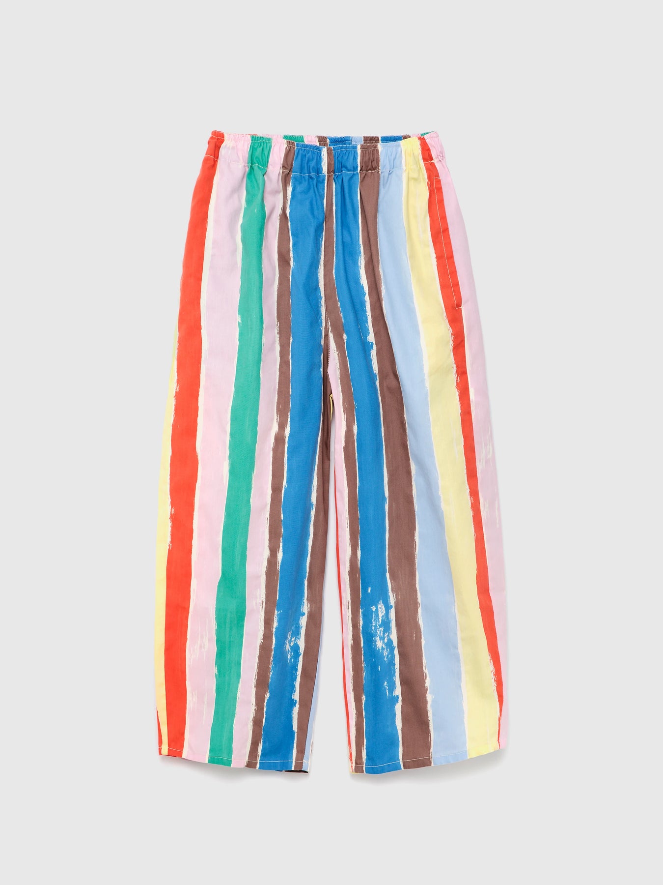 Multicolored striped pants inspired by the brushstrokes of the painter.