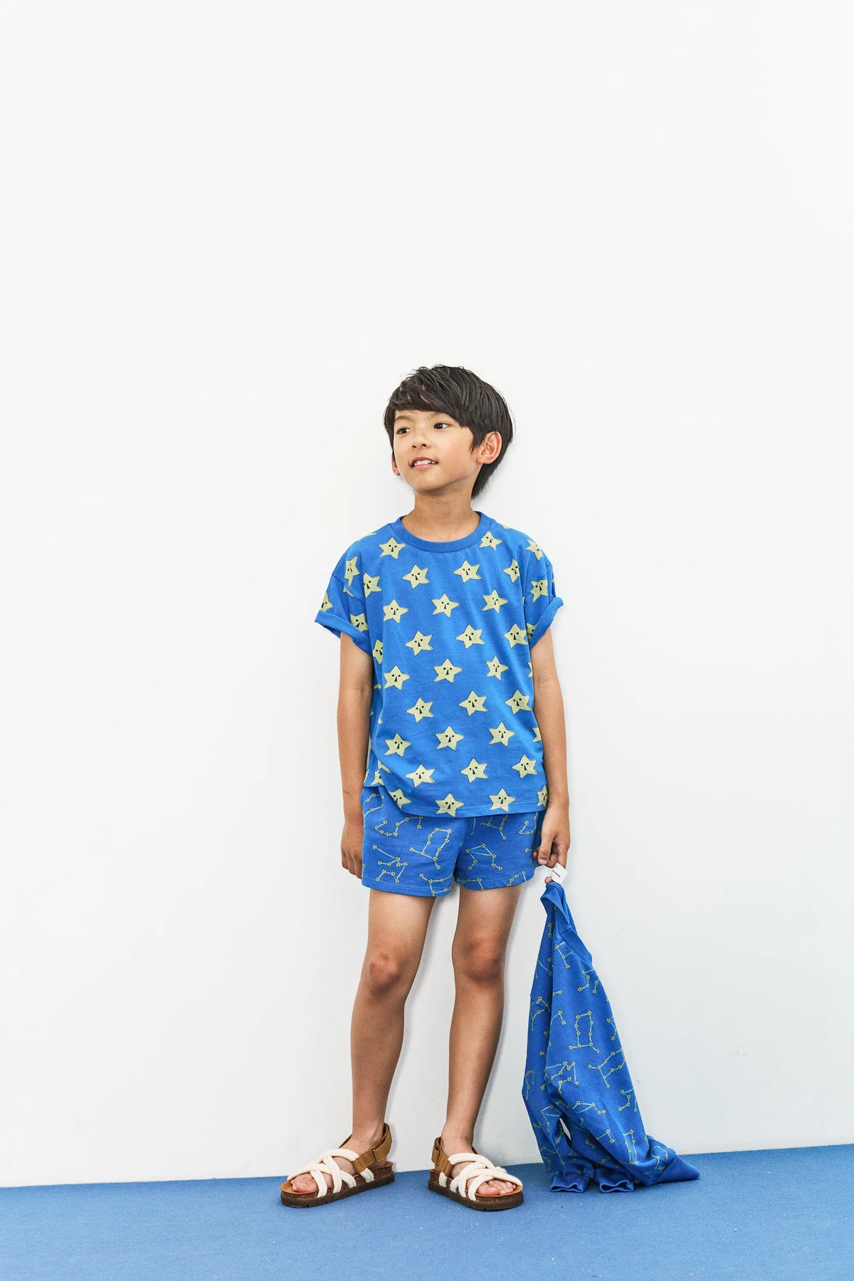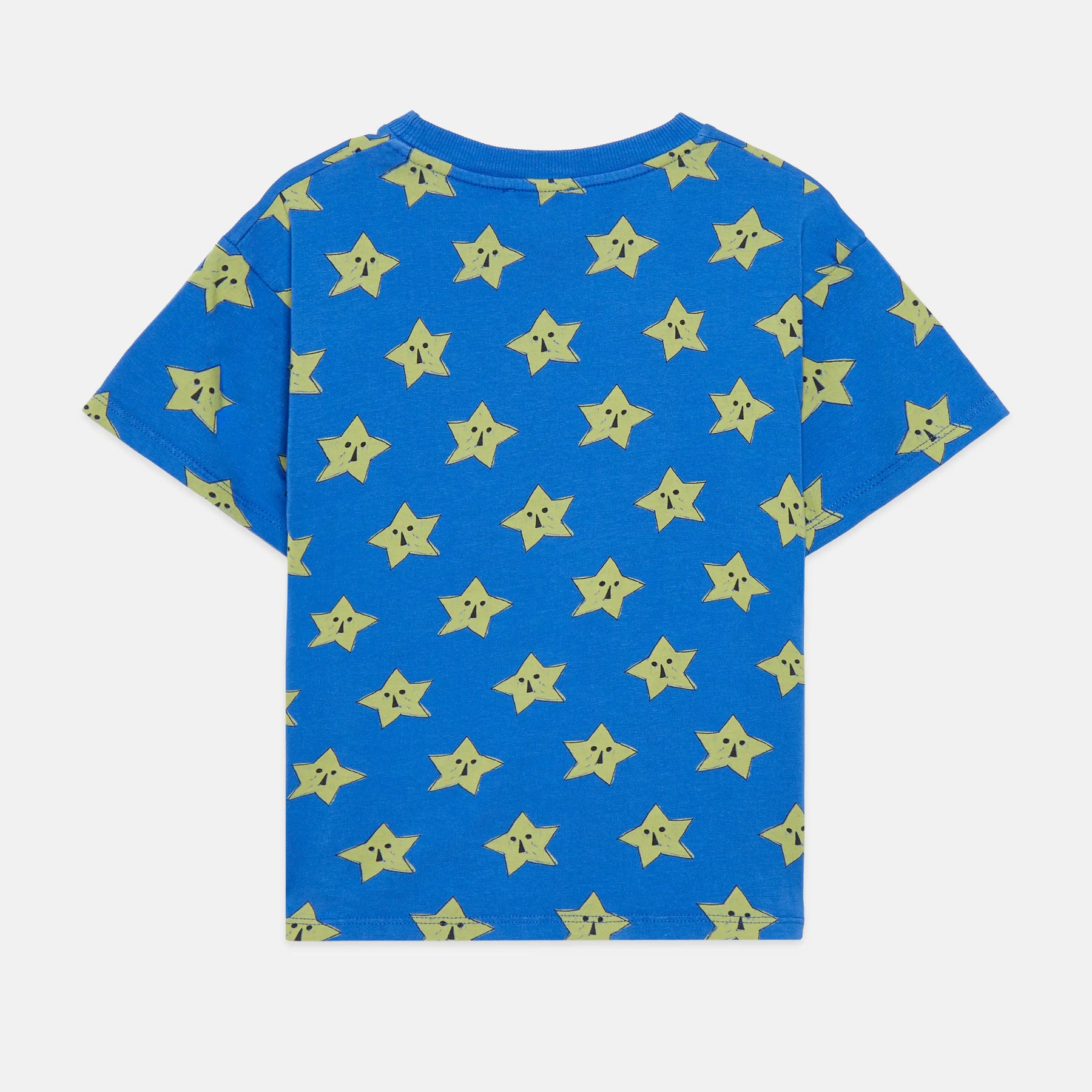 Camiseta azul con estampado de estrellas amarillas.
