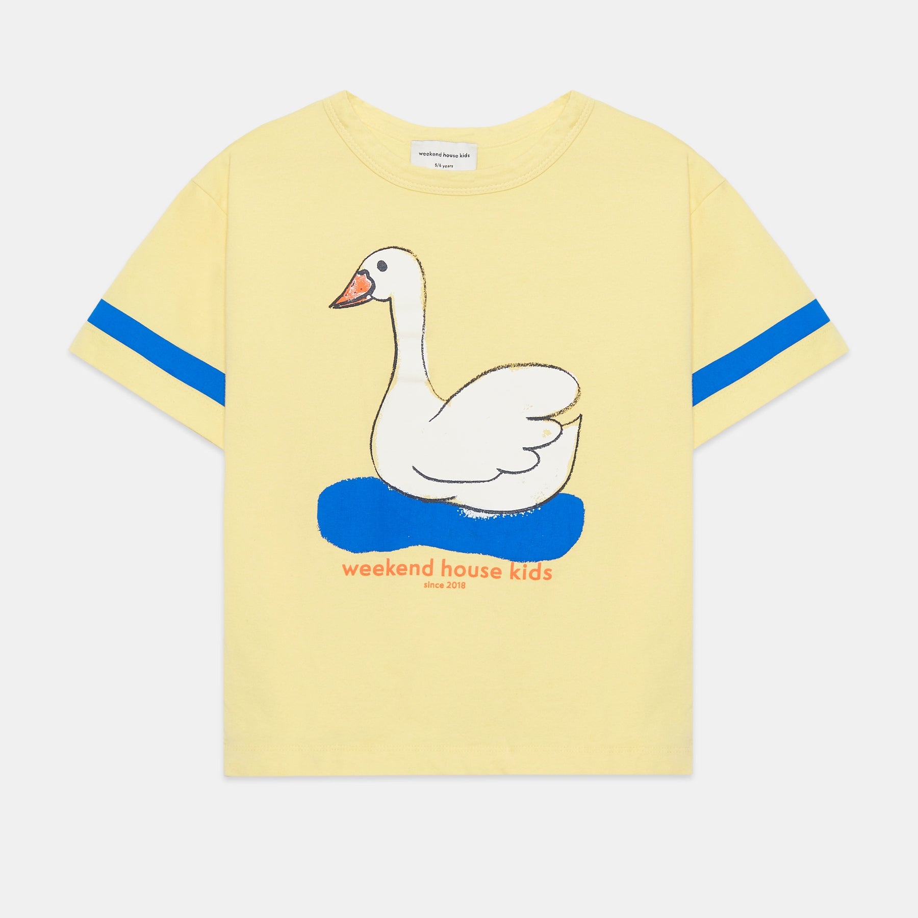 Yellow t-shirt with a print of a white swan. Loose fit.