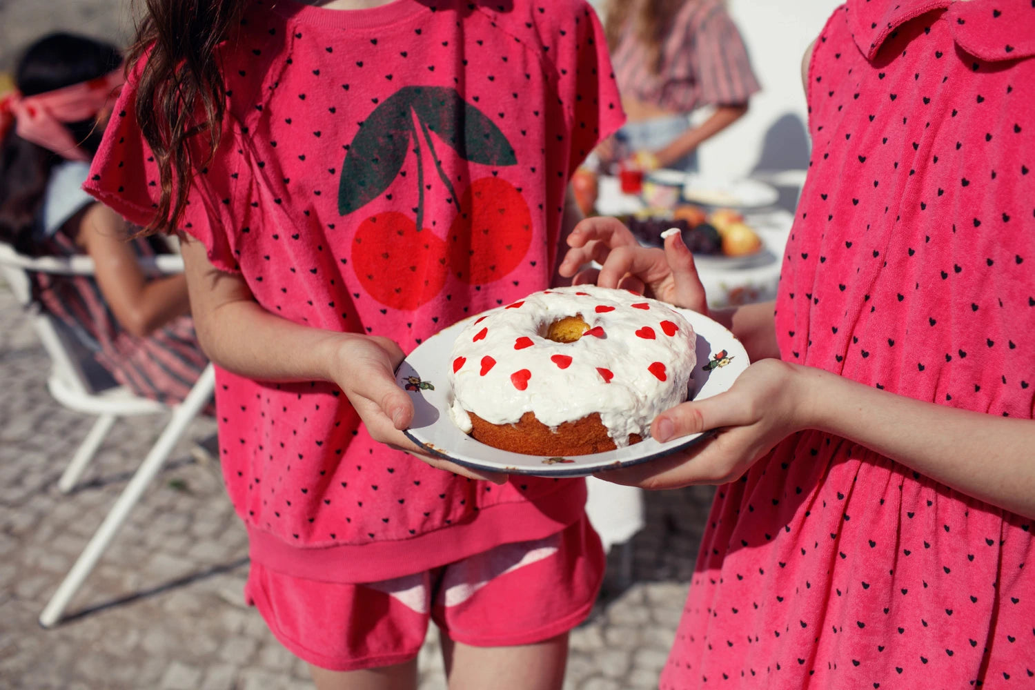 Pantalones cortos | rosa con print de rayas blancas Piupiuchick